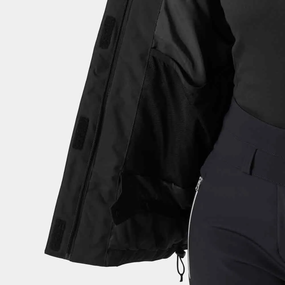 HELLY TECH® PROTECTION|PrimaLoft® BLACK Eco|LIFE POCKET™|SKI FREE eligible product|INSULATION – Primaloft® Black 100g|INSULATION – Primaloft® Black 80g|Detachable hood|Adjustable hood and hem|Adjustable waist with drawcord|Adjustable powder skirt|Adjustable cuffs|Chest and hand pockets|Inside stash pocket|Chest pocket|Ribbed inside cuff|PFC-free DWR|bluesign® main material.
