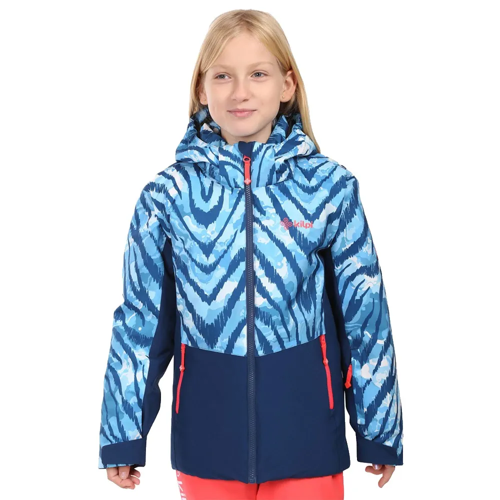 The Kilpi SAMARA-JG girls´ ski jacket in a brightly coloured print design is made from the durable SIBERIUM material with a water column of 5000mm/24h/m2 and sealed critical seams. Along with a lightweight, warm synthetic fiber infill, internal anti-snow collar and sleeve cuffs, it will keep your child warm and dry. The large, insulated hood with visor is detachable. The jacket features a sleeve pocket for a ski pass, a handy name tag as well as highly visible reflective prints. The Kilpi SAMARA-JG jacket is available in a wide range of sizes for the littlest girls or teenagers.