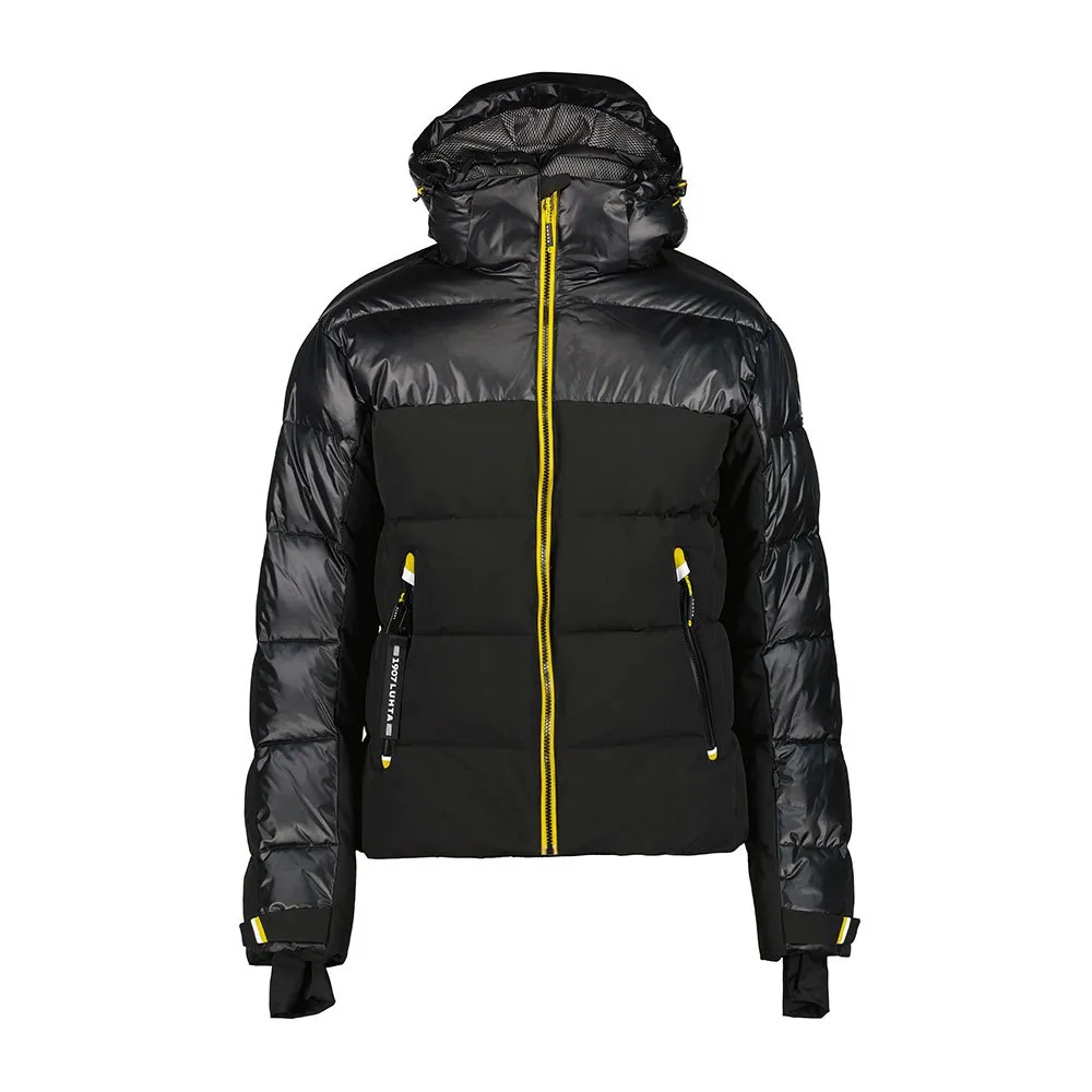 Luhta jacket for men. Articulated elbows. Comfortable inner collar. Adjustable hood. Detachable hood. Adjustable cuffs. Cuffs with thumbholes. Two front pockets with water-repellent zips. Internal pocket. Ski pass pocket on the sleeve. Functional pockets. Adjustable hem. Interior shoulder straps allow the garment to be easily shrugged off the shoulders and carried on the back when going indoors or if the weather gets too warm. Longer and protective back hem. Earphone loop. Detachable decoration. Logo label. Snow gaiters with anti-slip silicone band. Water column 20 000 mm. Breathability 10 000 gm224h. The fabric surface has been treated with a water-repellent finish. The product is made water-repellent without PFCs. This windproof material provides optimal wind protection and warmth. This A.W.S. EXTREME product meets the needs of active outdoor people even in extreme conditions. Structural details and protective materials make the product functional in every situation, no matter the weather. The product is made with a special focus on ecological and social sustainability. This product contains recycled materials, making less of an impact on our environment. Contains REPREVE® fibres made of recycled plastic bottles. An extremely warm and airy lightweight insulation with down imitation. The 4-way stretch material stretches to all directions giving a maximum freedom of movement.