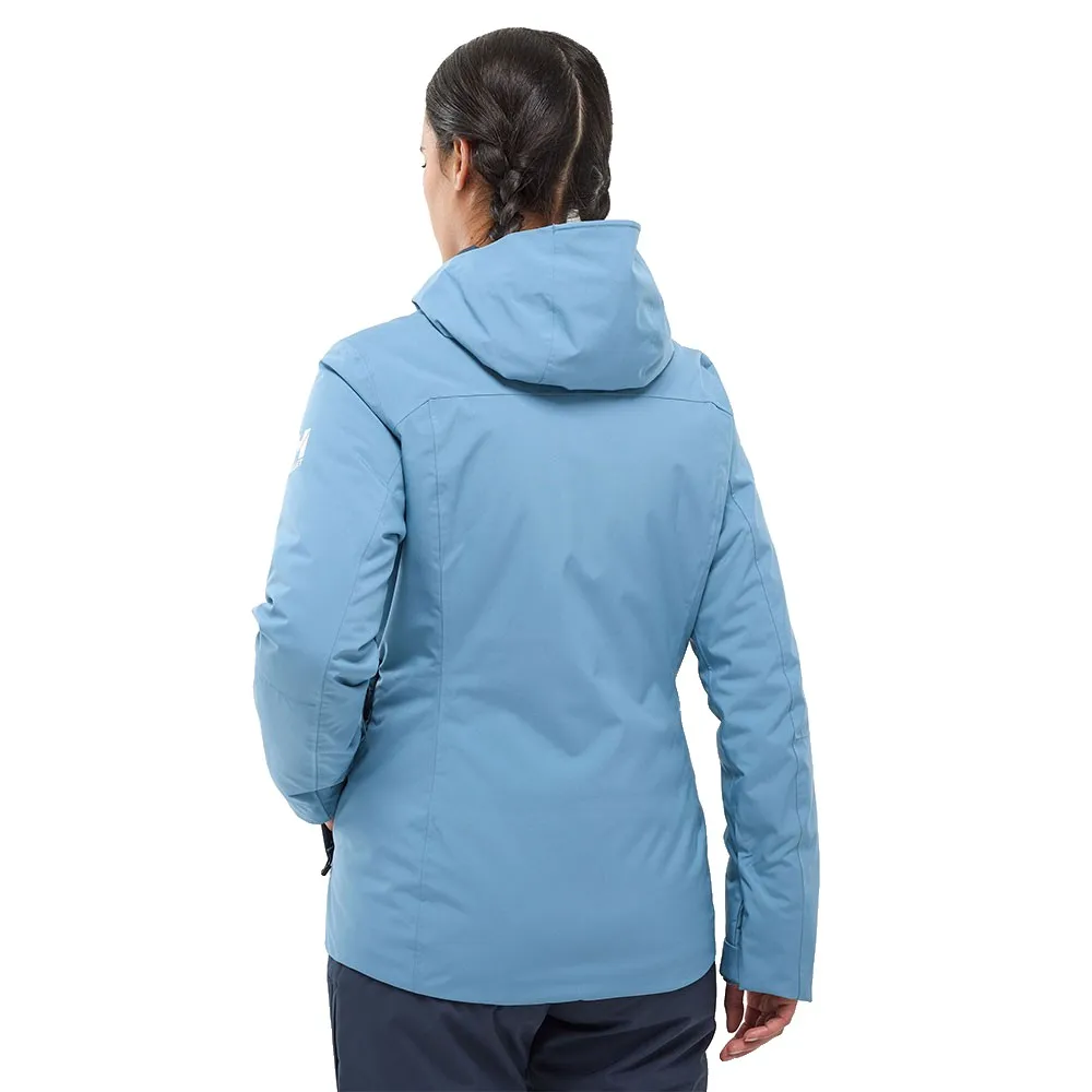 Conquer the mountain in the MILLET Brevent ski jacket. Designed with a flattering feminine cut, it combines style with high performance. Stay warm and dry thanks to its fully waterproof DRYEDGE™ 20K/20K fabric and 100% recycled REPREVE® insulation. The 2-way stretch material ensures total freedom of movement, while side vents let you regulate your temperature. Packed with functional pockets for your ski pass and goggles, this versatile jacket is perfect for the slopes and everyday winter adventures