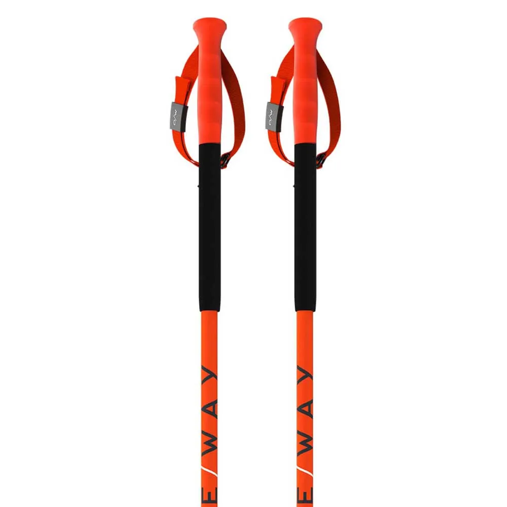 Super cute fluorescent orange, adjustable wrist straps, piste and off-piste tips, lightweight, nothing to complain about!