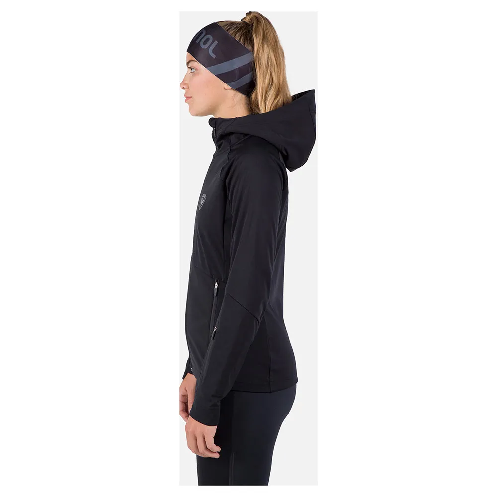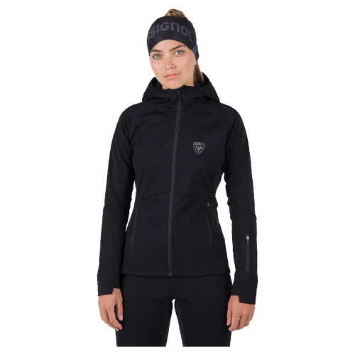 Designed as a lightweight, breathable layer for Nordic skiing, hiking and ski touring, the women´s Rossignol Genetys Hooded Jacket offers wind and weather protection with an easy-moving soft shell build.