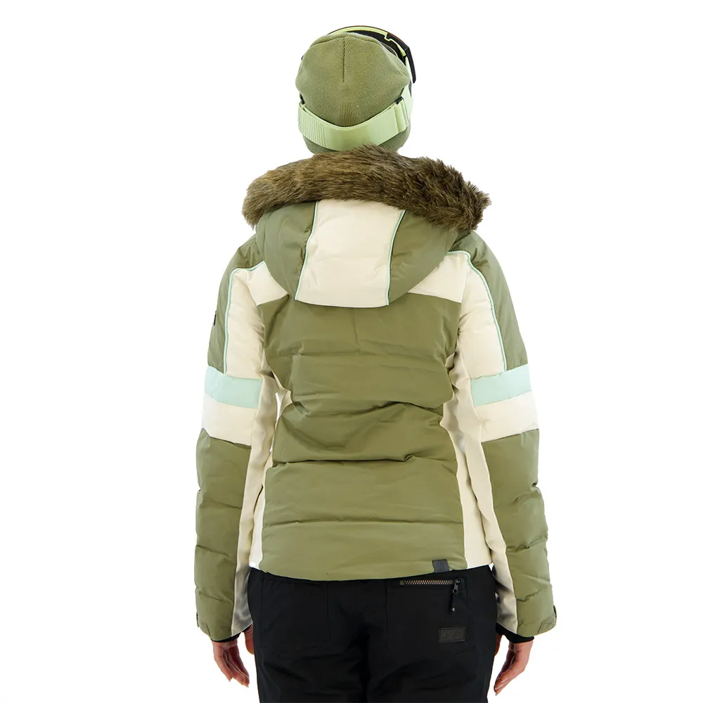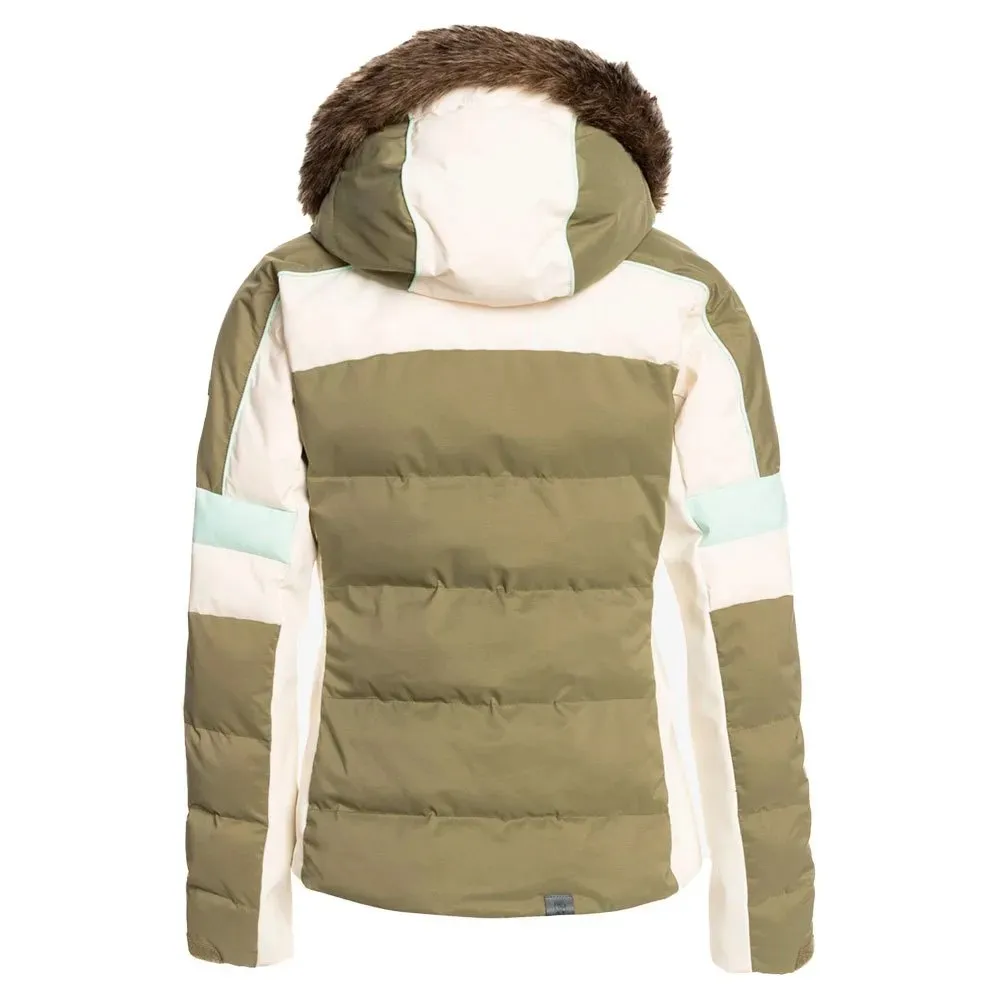 Key clip, 3D shaped stretch fixed powder skirt, Snap-away powder skirt system, Jacket-to-pant attachment system, Internal stretch wrist gaiters with thumbhole, Sleeve cuff adjuster, Chin guard, Lens cleaner, ROXY HydroSmart technology integrated in the collar, ROXY WarmLink belt compatible.