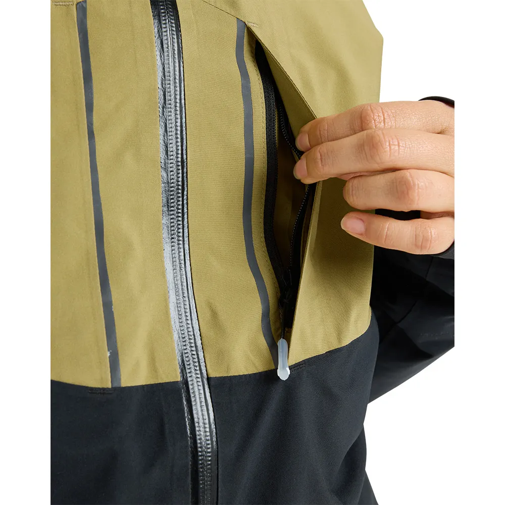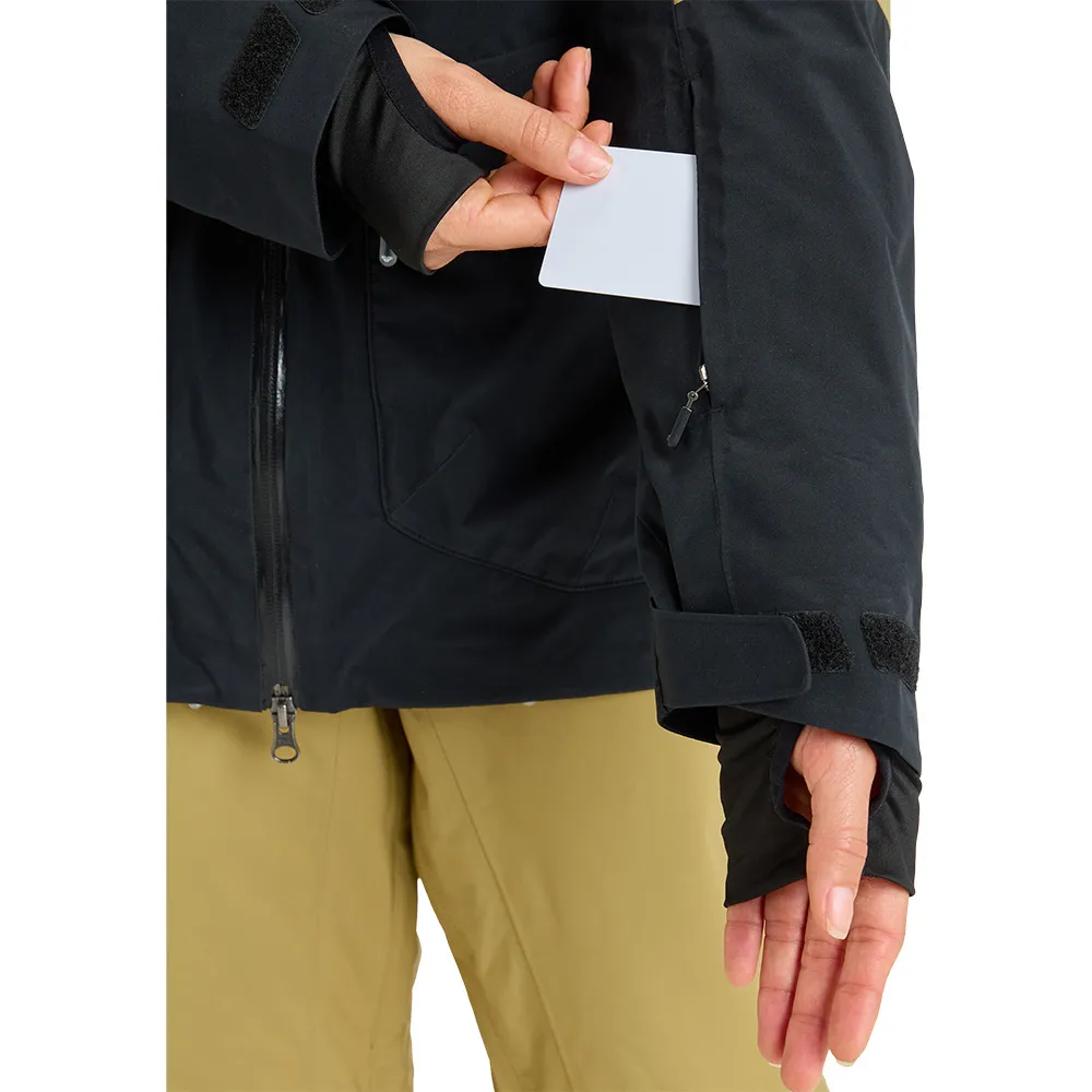 Pockets:2 double-entry zippered handwarmer pockets, 2 chest pockets, internal media and mesh goggle pocket, sleeve pass pocket.