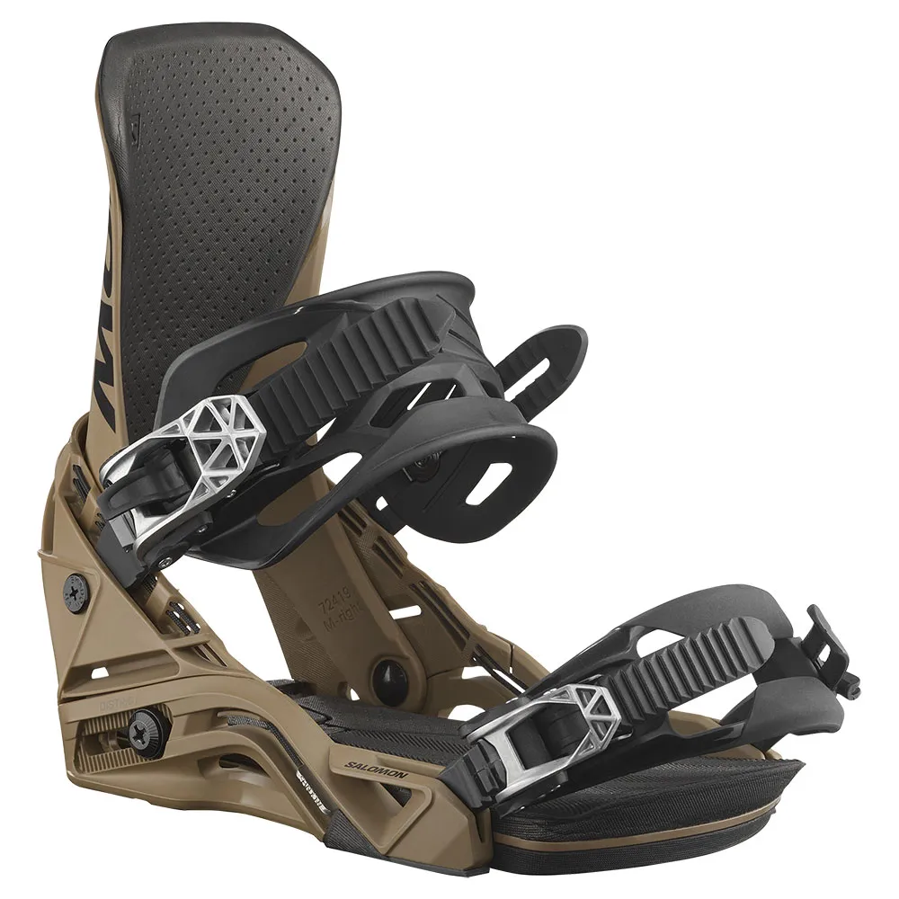 Unleash your freestyle creativity with the Salomon District snowboard bindings. Engineered for the park and groomers, their softer flex and asymmetrical design provide ultimate forgiveness and maneuverability. The exclusive ShadowFit technology uses a soft heelcup and Kevlar Quickwire to create a natural connection with your board, ensuring all-day comfort and precise energy transmission. Paired with a lightweight Asym Shadow strap for balanced support, the District offers the perfect blend of comfort and control for progressive riding