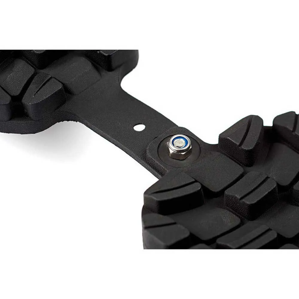 Ski Boot Traction devices allow you to walk confidently and comfortably with your ski boots! Their tapered shape at the tip makes the movement of the foot easier and their asymmetric crampon design makes walking on snow safer.