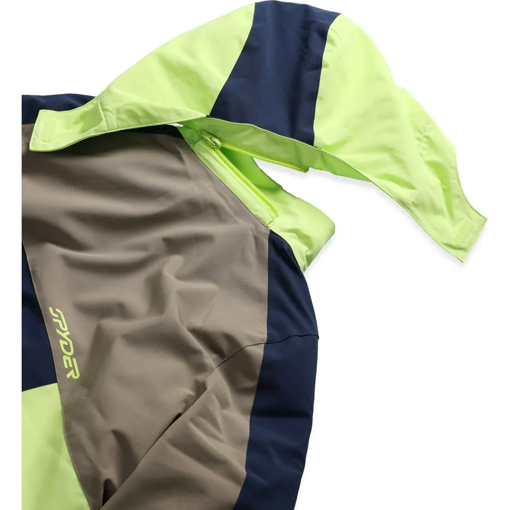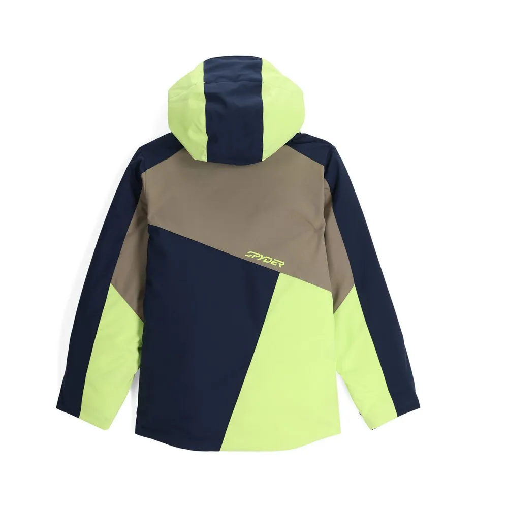 Pared-down detailing, blocked color designs, and classic Spyder lines and logos do justice to the dependable stretch Recycled EXO Shield polyester plain weave and DWR, 120g of EXO Thermo insulation.