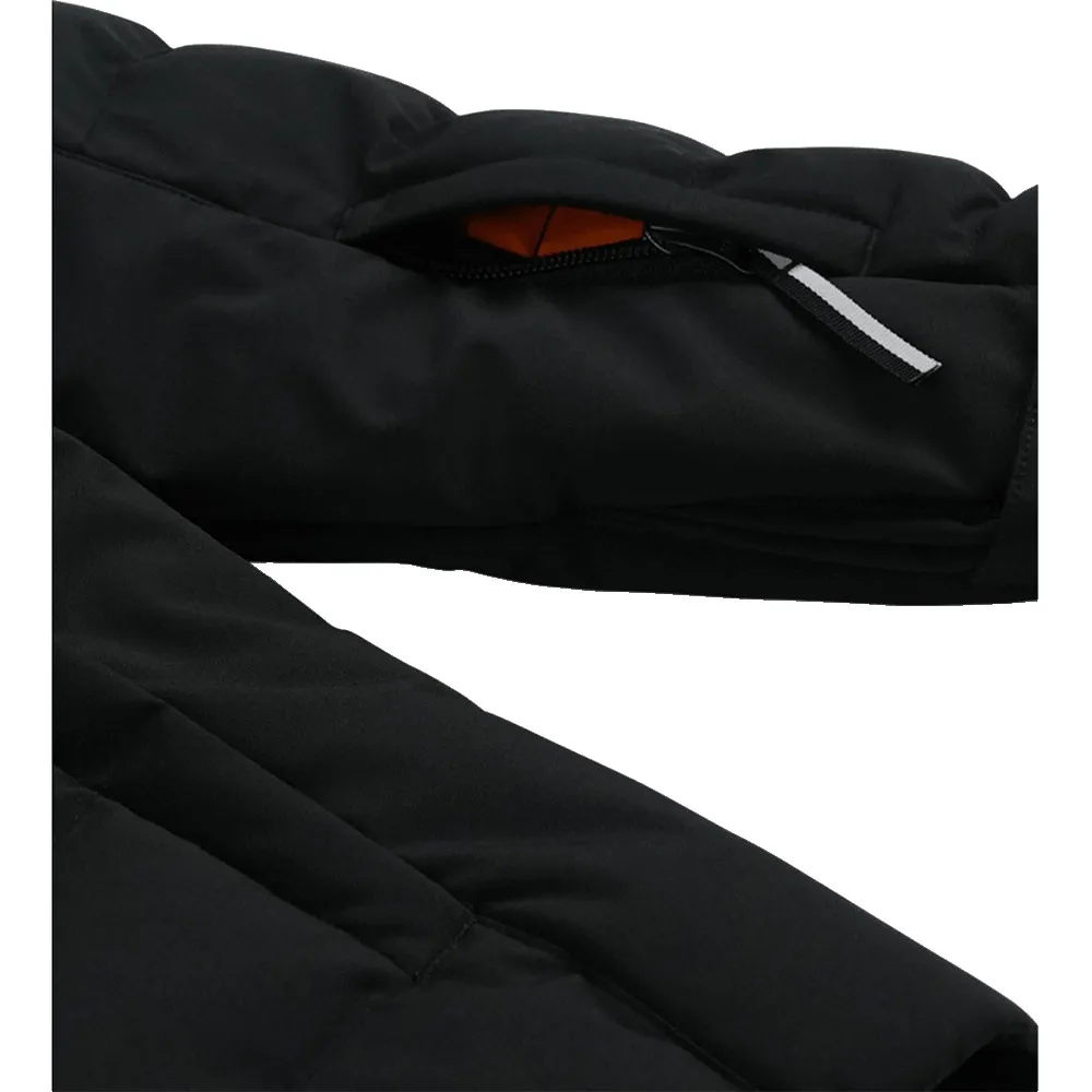 Its detachable hood with gaiter, fixed skirt with snap buttons and elastic grip, adjustable cuff tabs, and elastic cuffs with thumb holes keep the heat in, while the stretch fabric keeps young people moving.