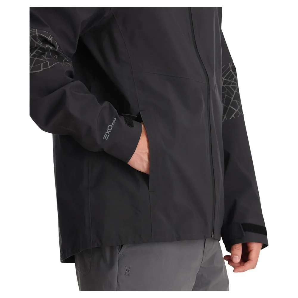 -100% Polyester (47% Recycled) EXO-SHIELD 3-Layer Plainweave, with 10K/10K laminate, PFC-Free DWR, and soft Jersey Knit interior.