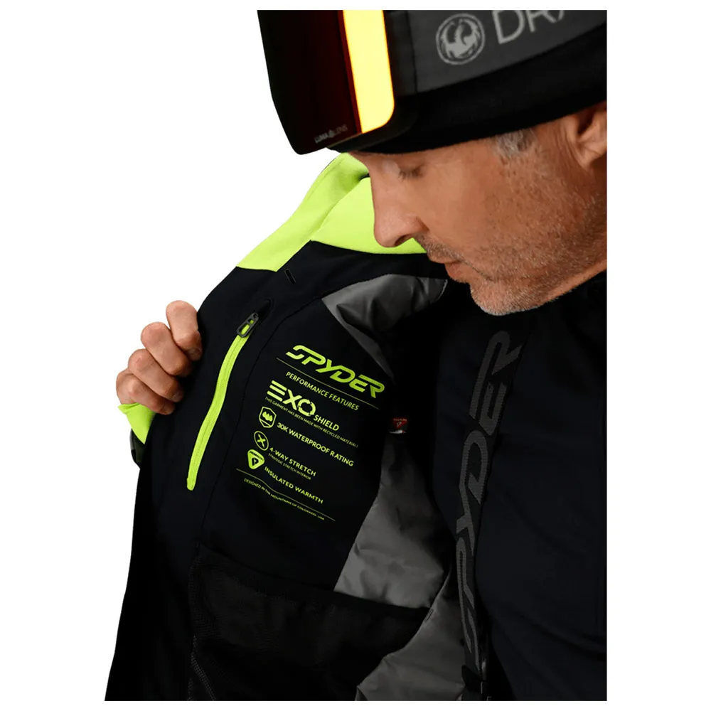 Conquer the mountain in any weather with the SPYDER Titan jacket. Its EXO SHIELD 30K/20K fabric delivers elite waterproofing and breathability, while lightweight PrimaLoft® Black ECO insulation keeps you warm without the bulk. Made with 4-way stretch recycled materials, this jacket is packed with ski-ready features like a removable helmet-compatible hood, YKK® AquaGuard® zippers, and underarm vents. It´s the ultimate choice for skiers demanding peak performance, comfort, and style from first chair to last run