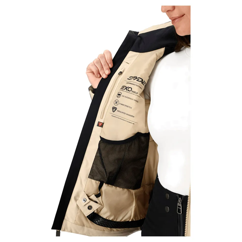 The Vida also features essential ski features such as a powder skirt, interior pockets, and underarm ventilation for technical comfort.