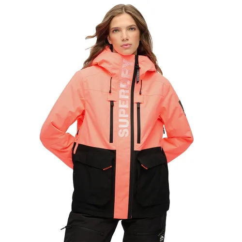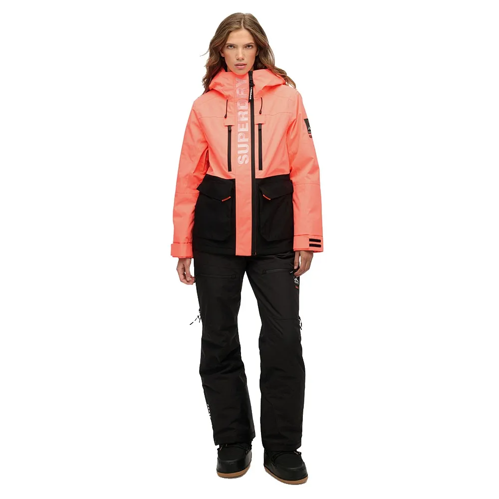 Conquer the slopes in style with the SUPERDRY Ultimate Freestyle jacket. Engineered for high-level activity, it boasts a 20k waterproof and 20k breathable rating to keep you comfortable and dry in heavy rain or wet snow. The relaxed fit ensures freedom of movement, while fully taped seams, a removable snow skirt, and storm cuffs with thumbholes provide ultimate protection from the elements. With underarm vents for temperature control and plenty of pockets, including a ski pass holder, you´ll be ready for any mountain adventure