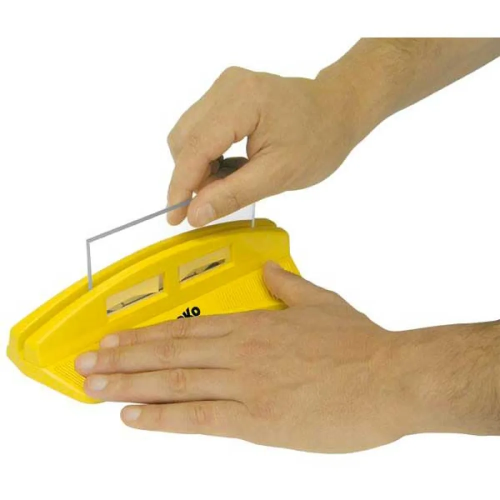 Sharpen the plastic scrapers perfectly to scratch the wax of the skis and boards. The ergonomics of the tool facilitates the work of sharpening.
