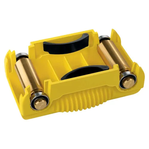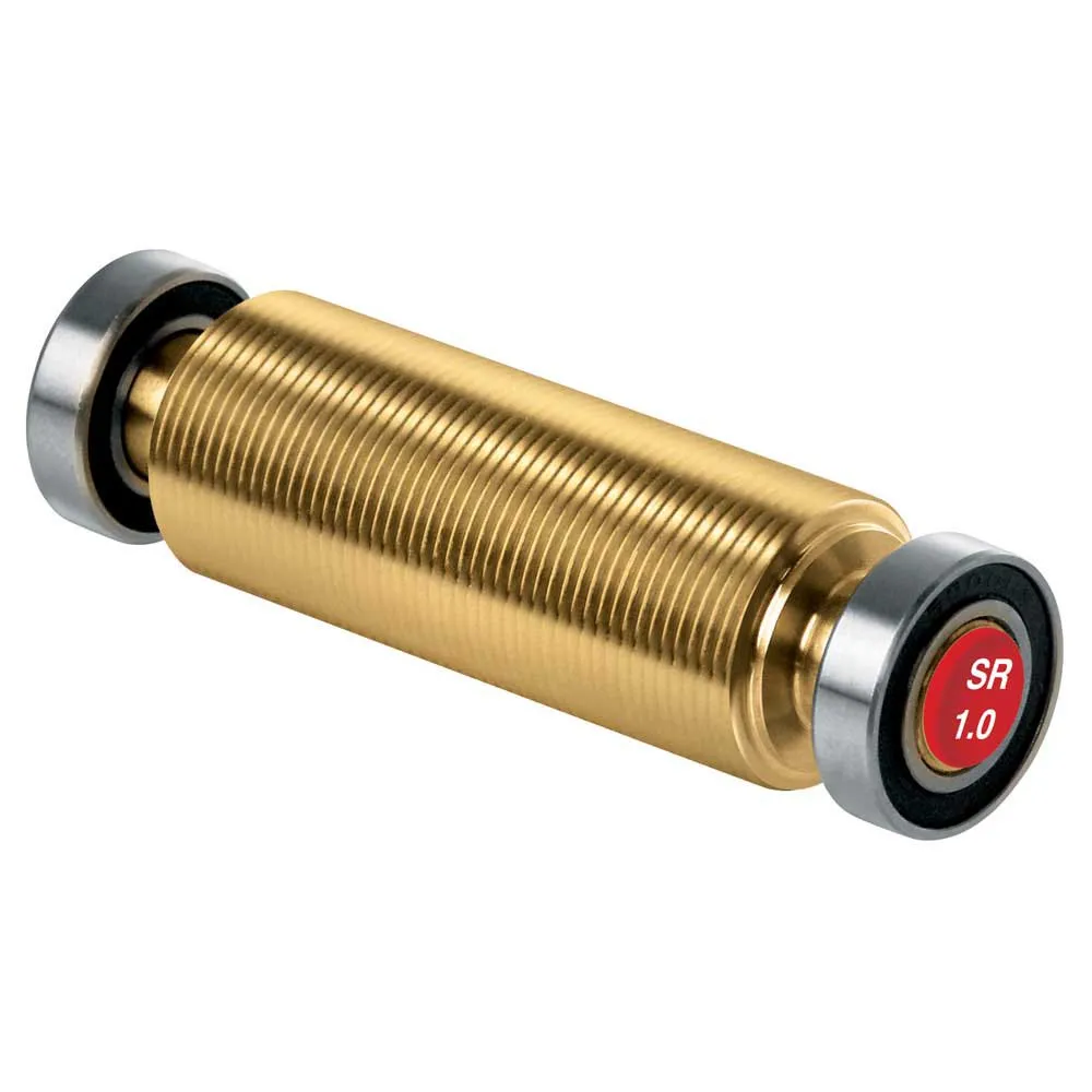 Ergonomically shaped surface structuring device with interchangeable structure roller for easily structuring of the running surface of cross country skis. Structuring significantly improves the sliding properties of skis. The device comes with the red roller (diagonal structure) for the mid snow temperature range.