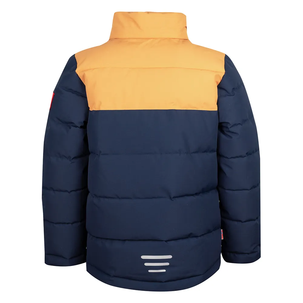 This jacket has a trendy three-colour design and was made to keep kids cosy even in sub-zero temperatures .