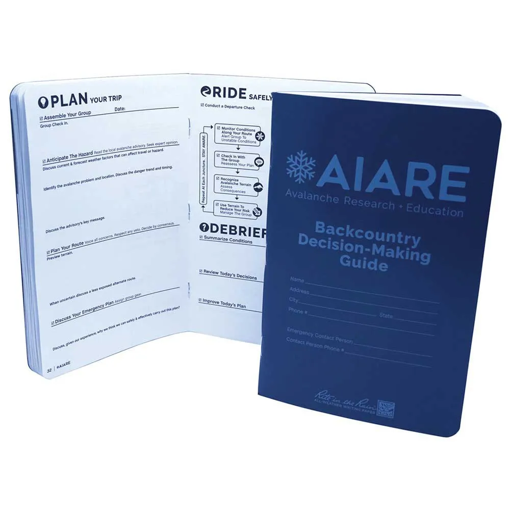 El Libro de campo de la guía para la toma de decisiones en el interior del país es una herramienta esencial para el estudio de la nieve para el aspirante profesional de avalancha o el estudiante serio. Desarrollado por el American Institute for Avalanche Research and Education (AIARE) para cumplir con los estándares de la American Avalanche Association (AAA). Utilizadas con un lápiz, las páginas son impermeables para que pueda recopilar datos incluso en los días más húmedos. El libro incluye la Lista de verificación de comunicación AIARE, el Marco de toma de decisiones AIARE y la Referencia de observaciones AIARE. Junto con la información AIARE, usará las 50 páginas de formato para ingresar planes de viaje, observaciones de campo y perfiles de nieve para tomar decisiones informadas mientras está en el campo.