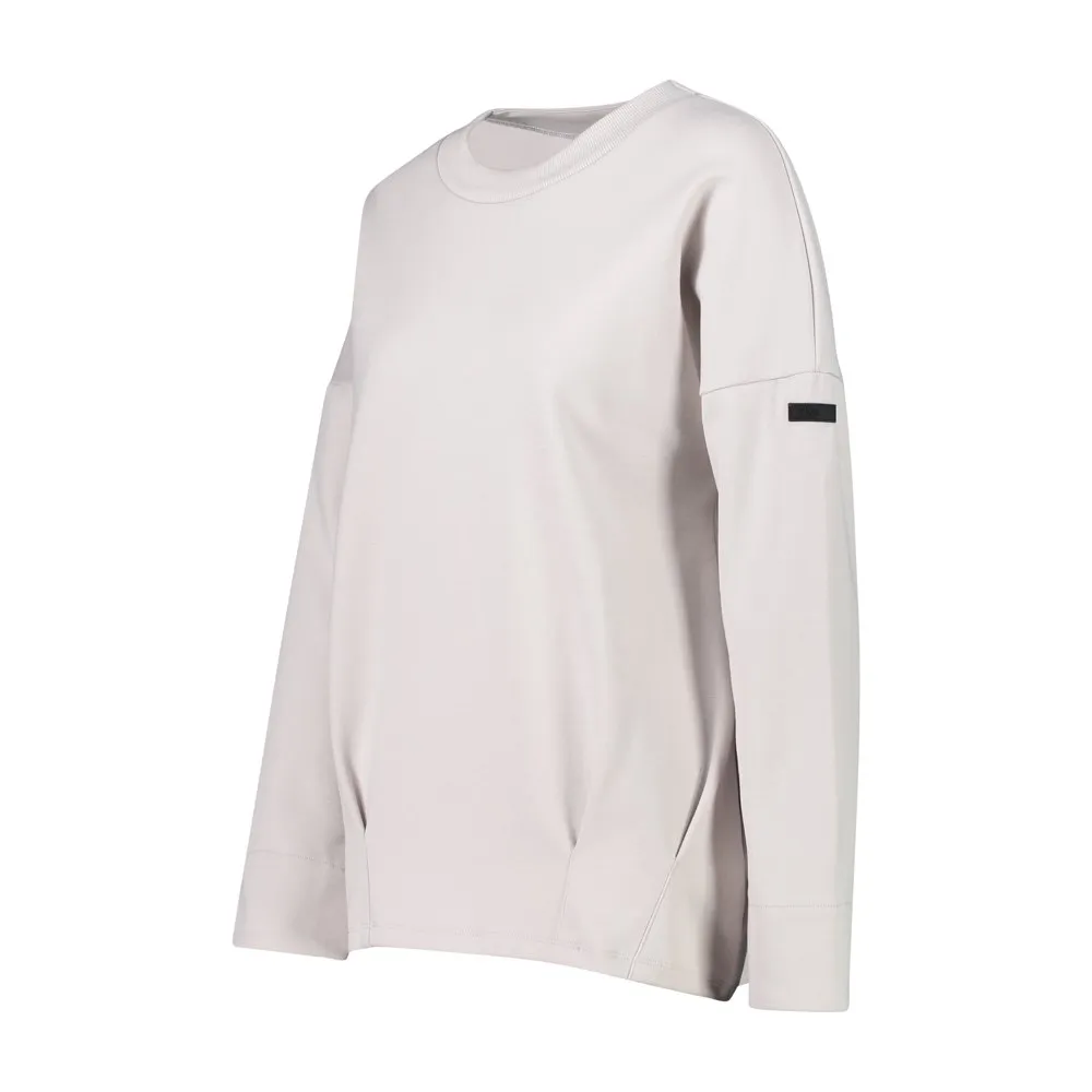 Sudadera de mujer de cuello redondo en doble punto elástico de corte moderno.