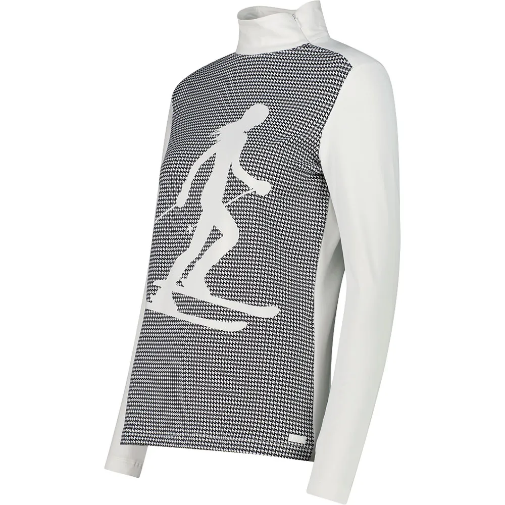 El estampado delantero con un esquiador añade un elemento distintivo y dinámico, evocando el espíritu del esquí y la vida al aire libre.