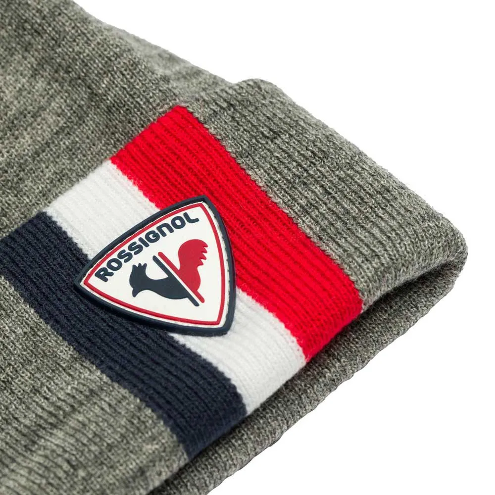 Un tributo a las raíces alpinas francesas de Rossignol, el gorro Luka para hombre rinde homenaje a las clásicas rayas tricolores y al logotipo del gallo en una cálida mezcla de lana y material sintético.