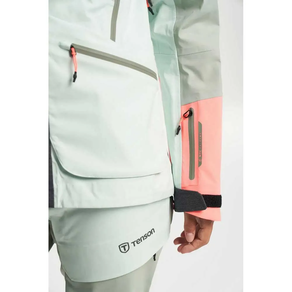 La chaqueta de esquí de travesía es impermeable gracias a la tecnología patentada MPC Extreme de Tenson (WP 20.000mm / MP 20.000 g/m2/24h), que combina una impermeabilidad extremadamente eficaz con una transpirabilidad excepcional.
