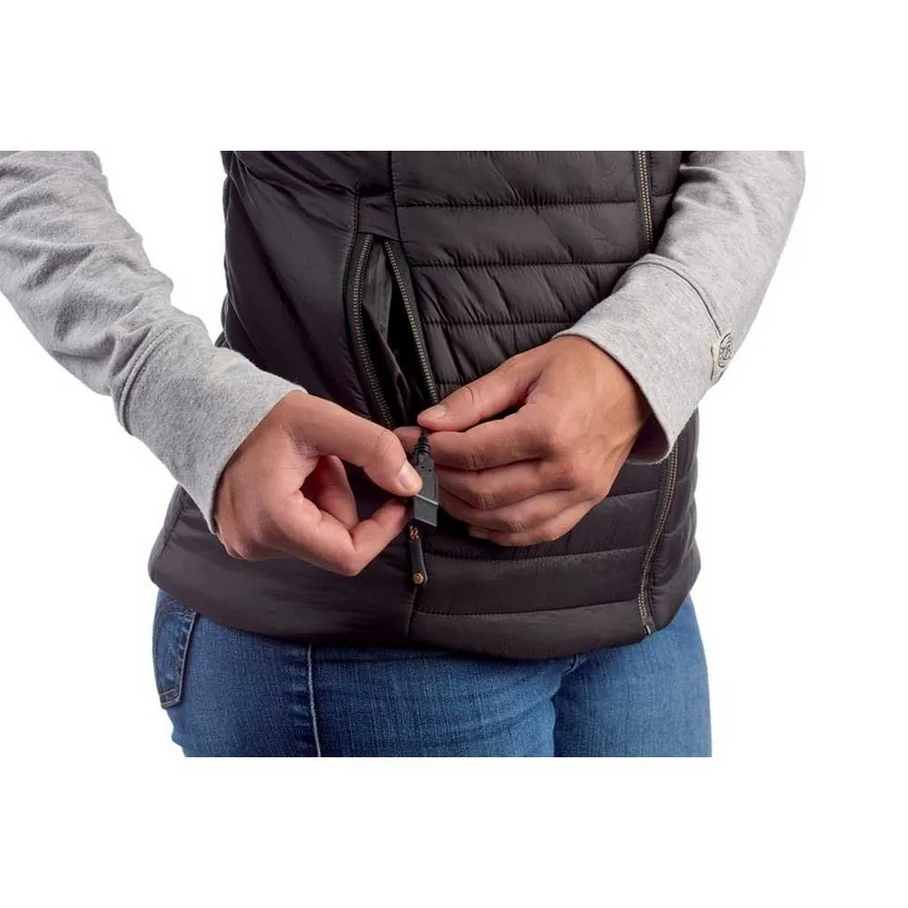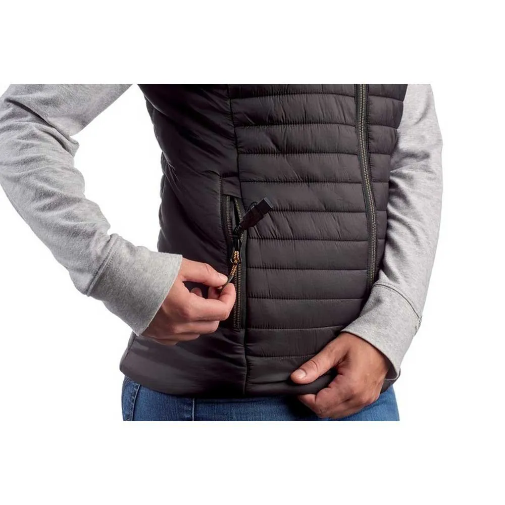 Disfruta de tus aventuras al aire libre en cualquier estación con el chaleco térmico THERM-IC. Este chaleco ligero para mujer proporciona un calor suave y uniforme con 5 elementos calefactores ultrafinos distribuidos por el estómago, la espalda y los bolsillos. Su diseño delgado y plegable es perfecto para usar en capas. Controla los ajustes de calor desde tu smartphone usando la función Bluetooth® y la aplicación Therm-ic. Alimentado por cualquier batería externa USB, este chaleco lavable a máquina y sin materiales de origen animal es tu clave para la comodidad en cualquier clima