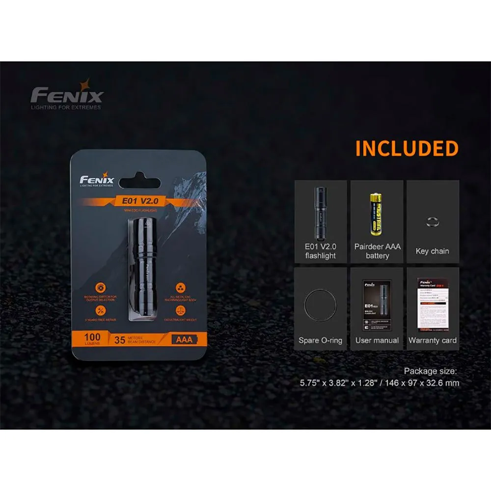 Ultrakompakti Fenix E01 V2.0 taskulamppu voidaan kuljettaa mukana avainten kanssa, joten sinulla on aina luotettava ja kirkas valo missä ja milloin tahansa.