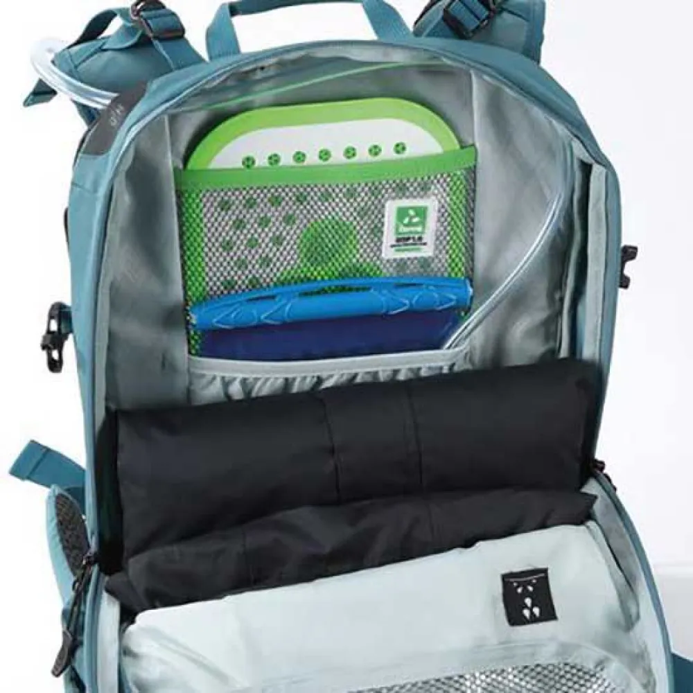 Huipulta parkkiin – Tämä laukku tarjoaa kaiken pystysuoralla lautatelineellä, backcountry-turvavarusteiden organisaatiotaskulla, ulkoisella vaellussauvan kiinnitys- ja varustesilmukalla, sisäisellä kuivaussuojuksella, fleecevuoratulla suojalasiholkilla ja nesteytysyhteensopivilla ominaisuuksilla. Kun lumilautailet repun kanssa, haluat mahdollisimman saumattoman ja mukavimman istuvuuden, mihin olemme keskittyneet lisäämällä kokoa säädettävän kantojärjestelmän Cross_Winds™-tuuletuksella, puristushihnalla ja Koroyde Eop 1.0 -selkäsuojan lisäämään tukea ja hengittävyyttä , ja suoja pussista vartaloon. Tämä on tiimimme ratsastajien unelmapaketti, koska siinä on kaikki mitä tarvitset Ak Linesille, viikonloppupuistopäiviin.