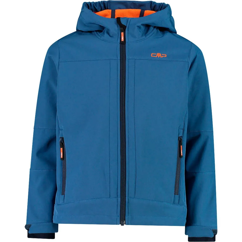 Idéale pour protéger les enfants des intempéries, la veste est en tissu softshell mélange doux et confortable et possède une capuche fixe.