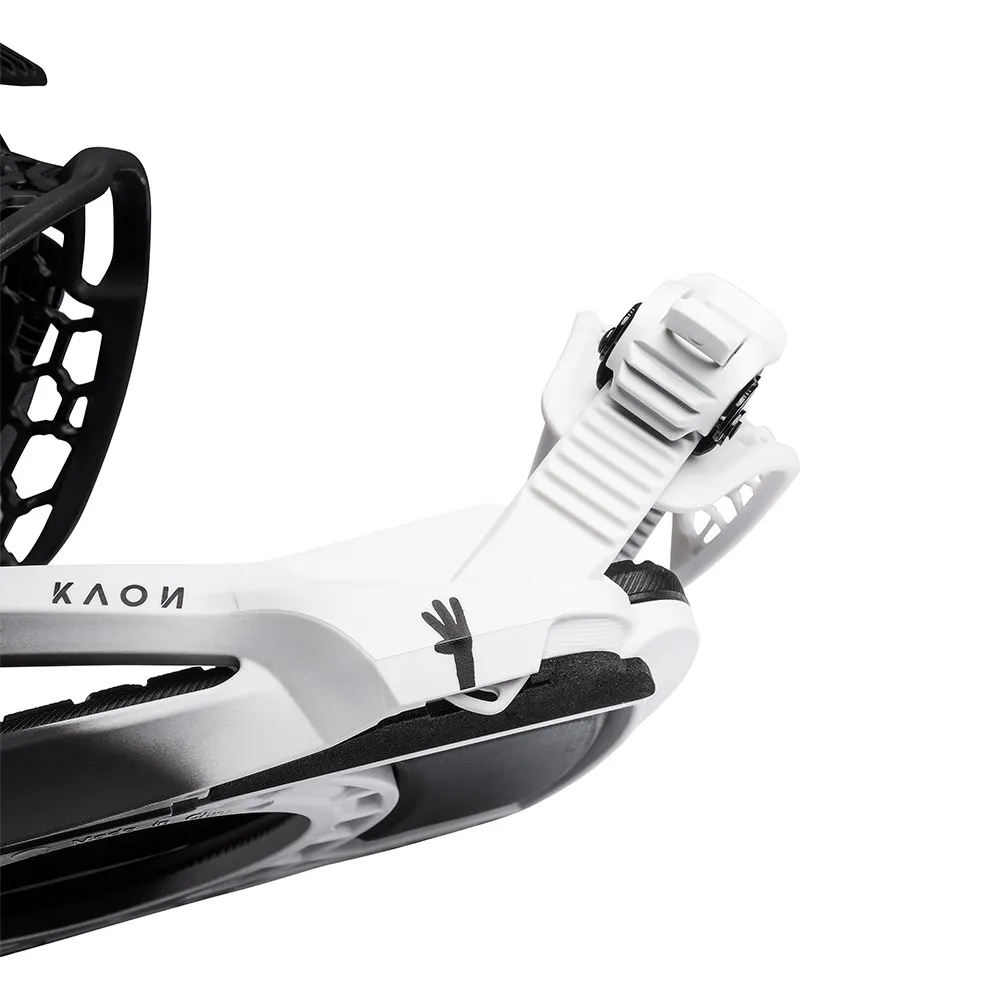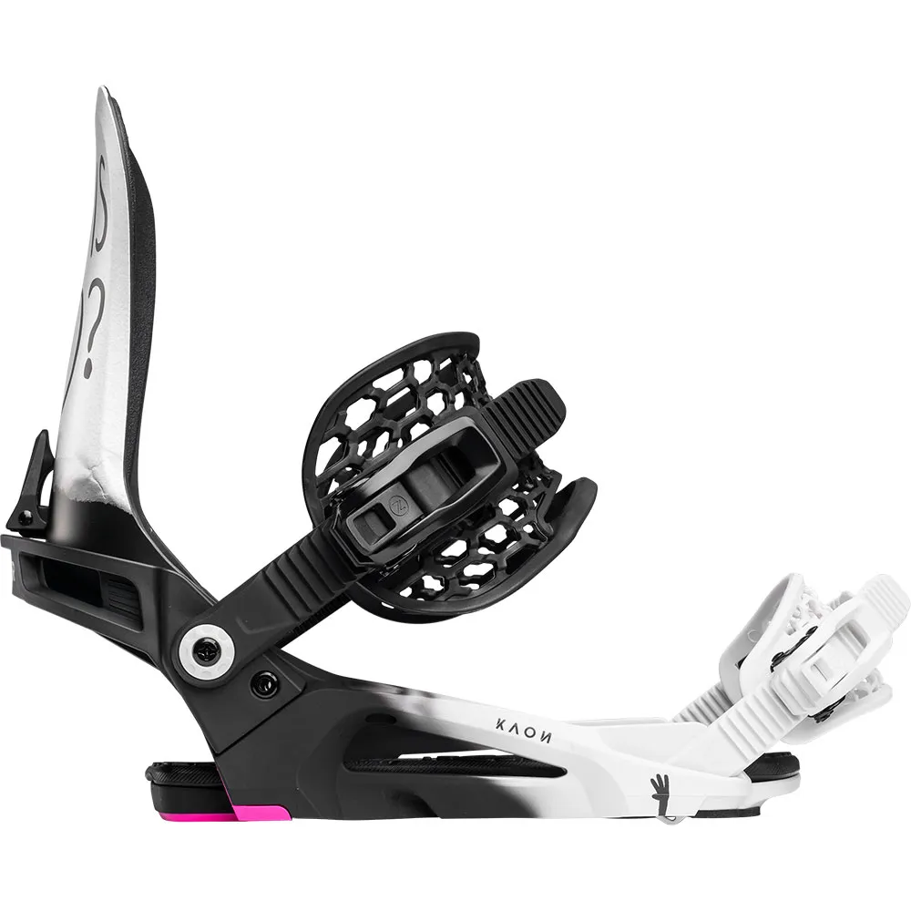 - Le Kaon est conçu pour un confort maximal et un contrôle précis de la planche, avec un spoiler et une embase asymétriques qui correspondent parfaitement à la forme de nos bottes.