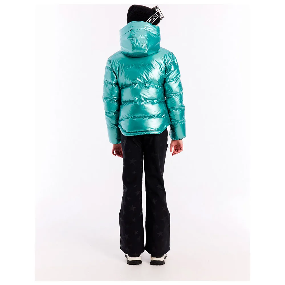Audacieuse sur les pistes et au-delà, la veste de ski PRTNorina JR se distingue par son design unique en feuille métallique et sa silhouette élancée.