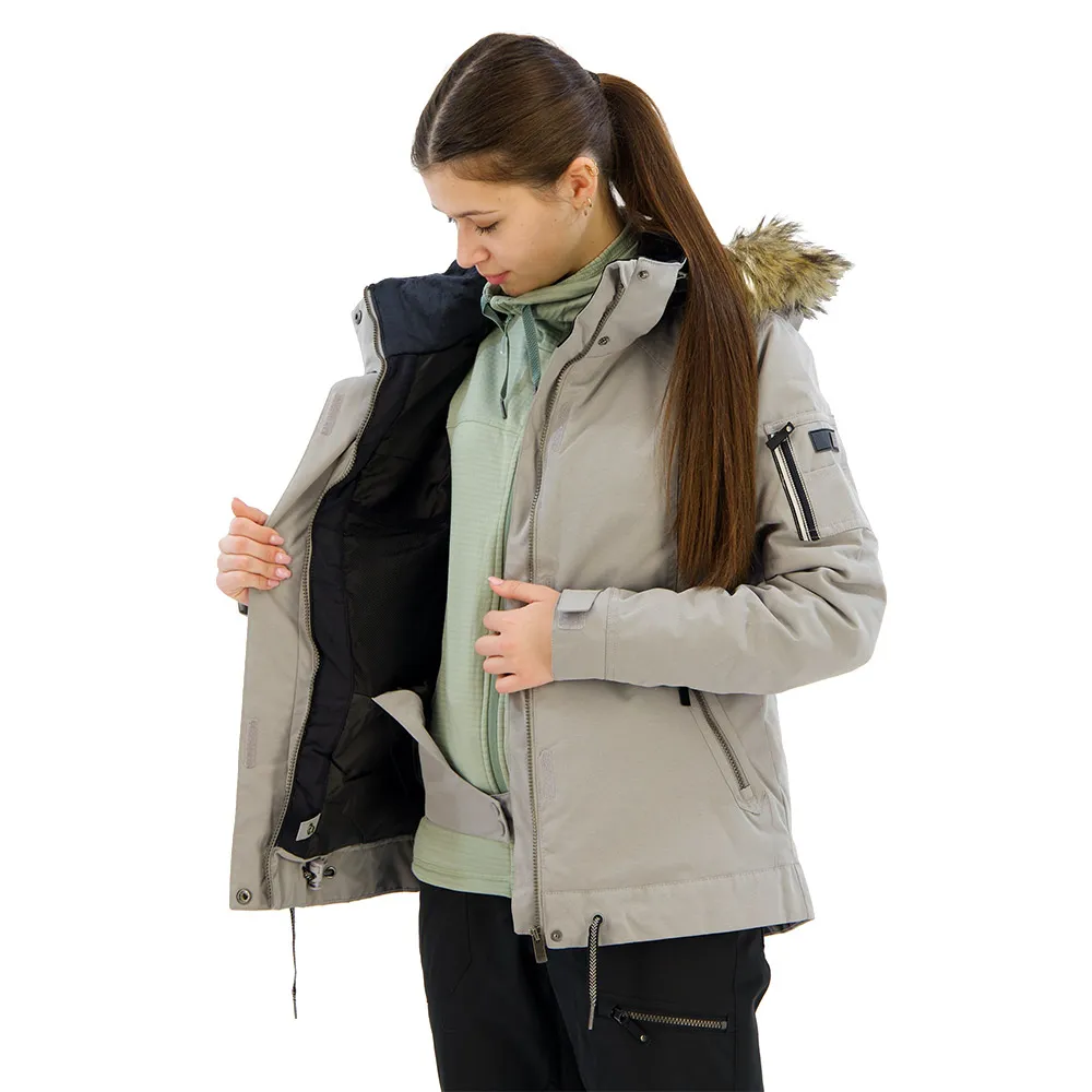 Porte-clés, Jupe pare-neige fixe en taffetas, Système de jupe pare-neige amovible, Système d'attache veste-pantalon, Ventilation sous les bras doublée en filet, Guêtres de poignets internes extensibles, Ajusteur de manchette, Technologie ROXY HydroSmart intégrée dans le col, Protège-menton, ROXY WarmLink compatible ceinture.