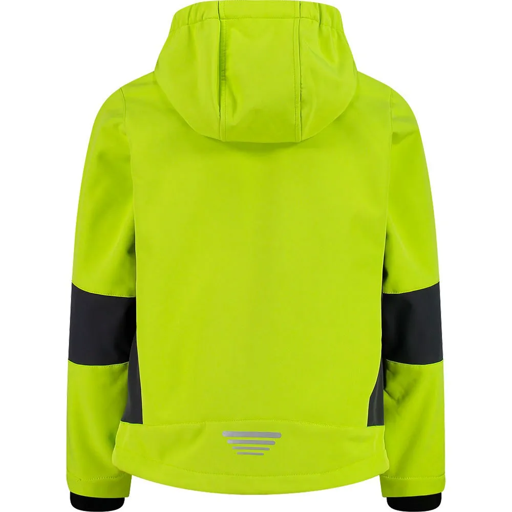 Perfetta per proteggere i bambini dalle intemperie, la giacca è realizzata in morbido e confortevole tessuto softshell mélange e presenta cappuccio fisso.
