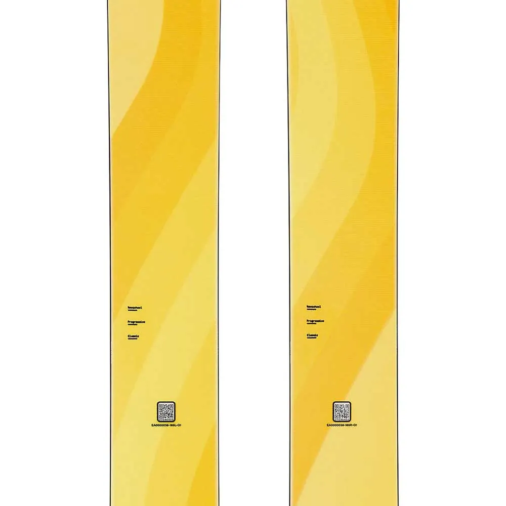 - Il tradizionale design a coda piatta è pensato per la velocità, la massima presa sui bordi e il controllo durante le curve in velocità. Attualizzato con un leggero rocker in coda, questa forma è più facile che mai per trasformare la curva in uno slarve e non si impiglierà in condizioni di neve fresca.