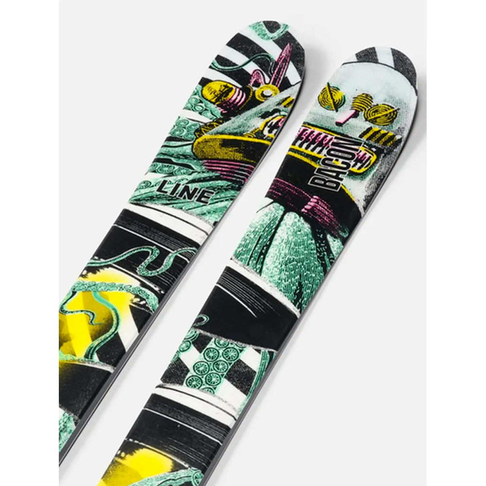 Il nuovissimo LINE Bacon 108. Creato con le nuove tecnologie Thin Tips, Thick-Cut Sidewalls e Bio-Resin, il Bacon 108 è un´iterazione raffinata e migliorata del ricercato Sir Francis Bacon. Con una versatile larghezza di 108 mm, una flessione simmetrica, un peso ridotto e miglioramenti della durata, il Bacon 108 è il tuo biglietto per uno sci freestyle all-mountain che può galleggiare e scivolare nella neve fresca senza sacrificare le prestazioni su pista e in park.