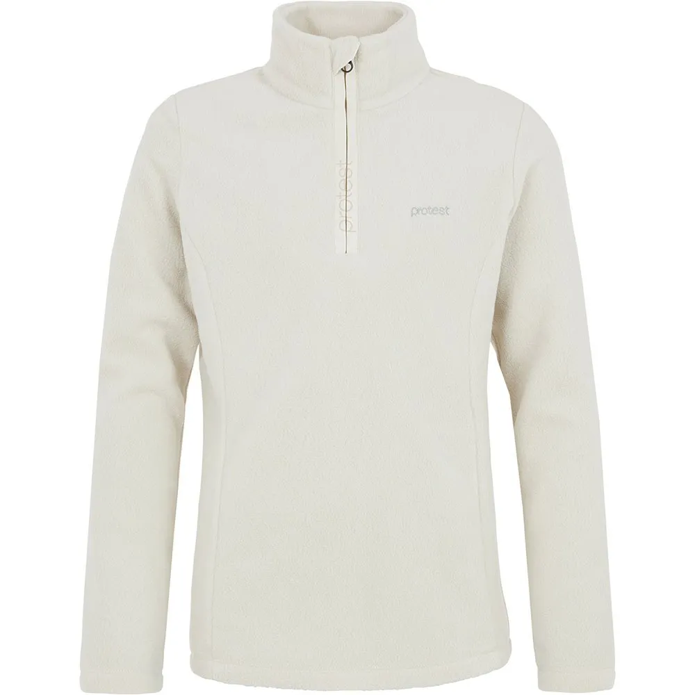Questo Protest Mutey JR è un maglione in pile monocolore con maniche lunghe e cerniera corta al collo, un must-have per il tuo outfit da snowboard.