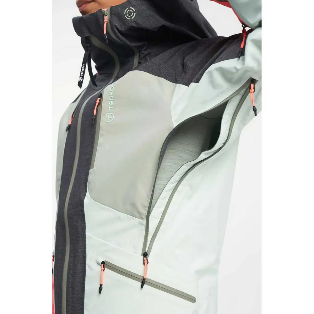 La giacca da Ski Touring è impermeabilizzata con la tecnologia proprietaria MPC Extreme di Tenson (WP 20.000mm / MP 20.000 g/m2/24h) che combina un´impermeabilità estremamente efficace con una traspirabilità eccezionale.