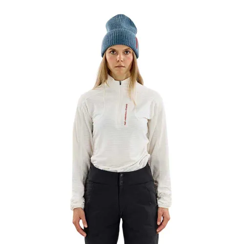 Uno strato intermedio leggero con un look pulito e una vestibilità moderna. La felpa tecnica con mezza zip è un capo versatile da indossare sotto la giacca da sci o per qualsiasi attività all´aperto. Il tessuto è elasticizzato in quattro direzioni con una mano molto morbida. È ad asciugatura rapida e traspirante con prestazioni tecniche superiori, realizzato in poliestere riciclato.