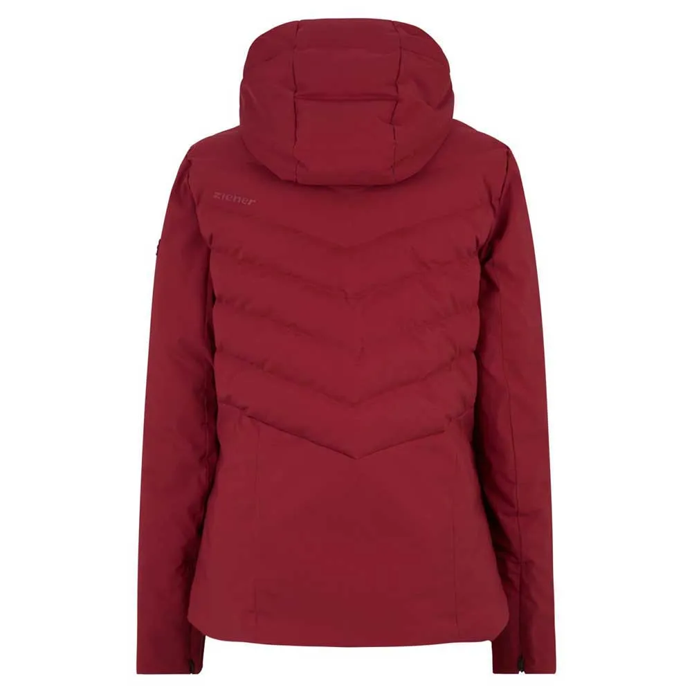 La funzionale giacca da sci imbottita da donna ZIENER TOKKI LADY impressiona con le sue numerose soluzioni dettagliate ed è caratterizzata dalla MicroDown lavabile e rispettosa dell´ambiente. La membrana ZIENER AQUASHIELD® traspirante, impermeabile e antivento (colonna d´acqua 10.000 mm / traspirabilità 10.000 g/m²/24h) garantisce un clima caldo e asciutto. Grazie all´impronta rispettosa dell´ambiente, la giacca è priva di PFC. L´isolamento PrimaLoft® (imbottitura da 100 g/m²) mantiene l´equilibrio termico e garantisce il massimo comfort. Il materiale elasticizzato a 4 vie e la fodera Comfortemp® assicurano la massima libertà di movimento e comfort. Le cuciture più importanti sono nastrate. Le aperture sotto le ascelle assicurano la necessaria ventilazione. Un cappuccio funzionale staccabile e regolabile, i polsini interni elasticizzati e la polsiera antineve fanno parte dell´equipaggiamento di base. Caratteristiche pratiche come una tasca per occhiali da sci e da sole, una tasca per smartphone e una tasca per lo skipass sul braccio sinistro rendono lo sci ancora più divertente. Altri piccoli oggetti possono essere riposti nella pratica tasca sul petto con cerniera. Il prodotto contiene materiale riciclato per un uso sostenibile delle risorse.
