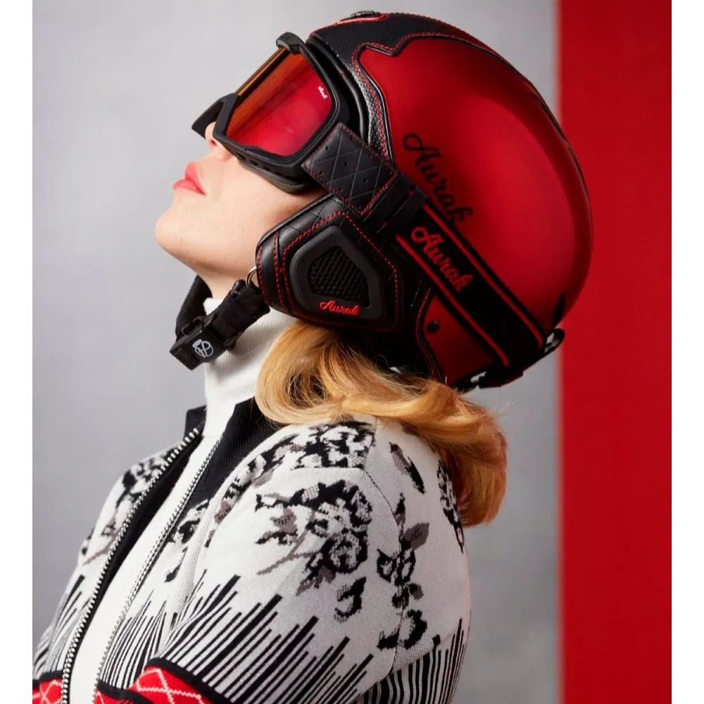 Onze 100% adrenaline helm! Zwart geperforeerd leer en metallic rood geven al zijn kracht aan onze vuurhelm.
