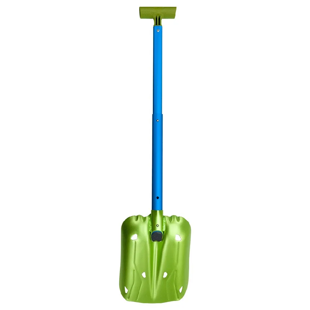 Aluminium sneeuwschop voor toerskiën en bergbeklimmen, met een ergonomische handgreep voor betere grip tijdens gebruik en verbeterde efficiëntie tijdens graafwerkzaamheden. De schop is ontworpen met ribben om de stijfheid te vergroten en met gaten voor het gebruik als sneeuwanker.