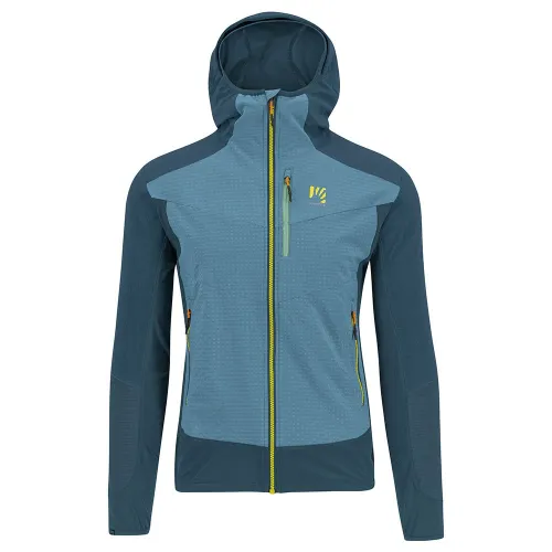 Hybride jas gemaakt met een combinatie van stoffen die windbescherming, comfort, bewegingsvrijheid en warmte garandeert.