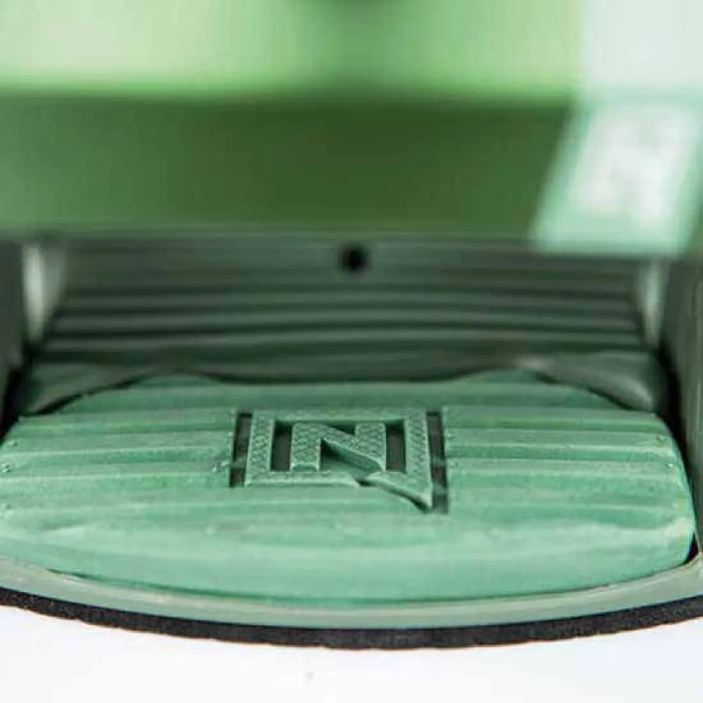 - De hoeken op de basisplaat van de bindingen zijn afgerond om een hard wrijvingspunt te verminderen waar de binding en het board elkaar ontmoeten. De afgeronde hoeken onder de binding zorgen ervoor dat het board ook meer natuurlijk kan buigen rond de binding base tray, waardoor een meer natuurlijke rit mogelijk is en er minder stress op het board in deze gebieden komt.