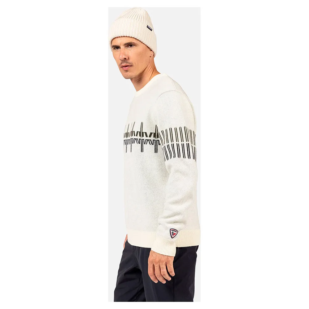 De Rossignol Patterned Crewneck Sweater voor heren, geïnspireerd op de Alpen, is de perfecte match voor besneeuwde hutten en ijzige bergdorpen.