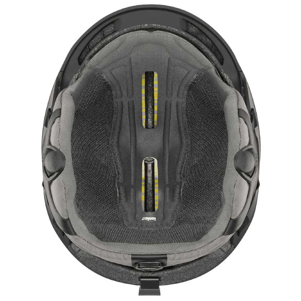 - Afneembare skibrilbandvergrendeling voor een gestroomlijnde schaal wanneer de skibril onder de helm wordt gedragen