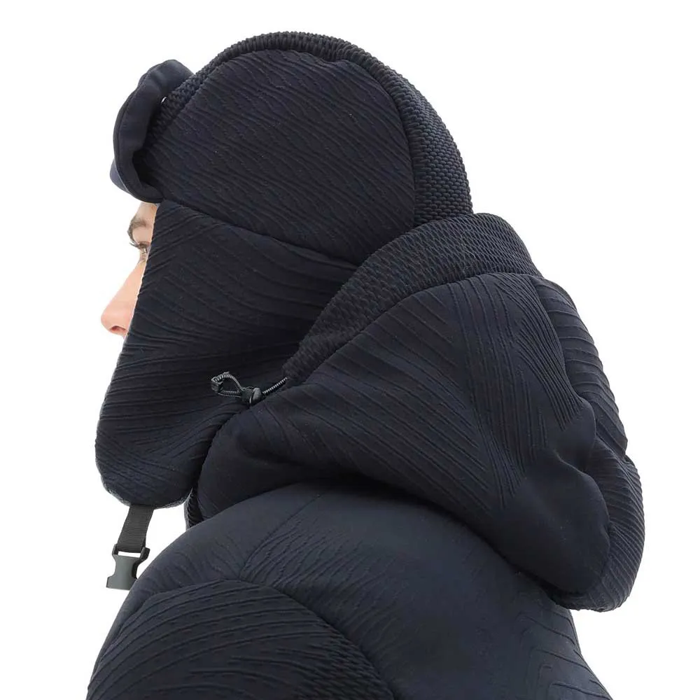 De driedimensionale gebreide stof maakt dit accessoire uniek, de binnenlaag met BUFFERCONE-technologie zorgt voor een omhullend gevoel van warmte.
