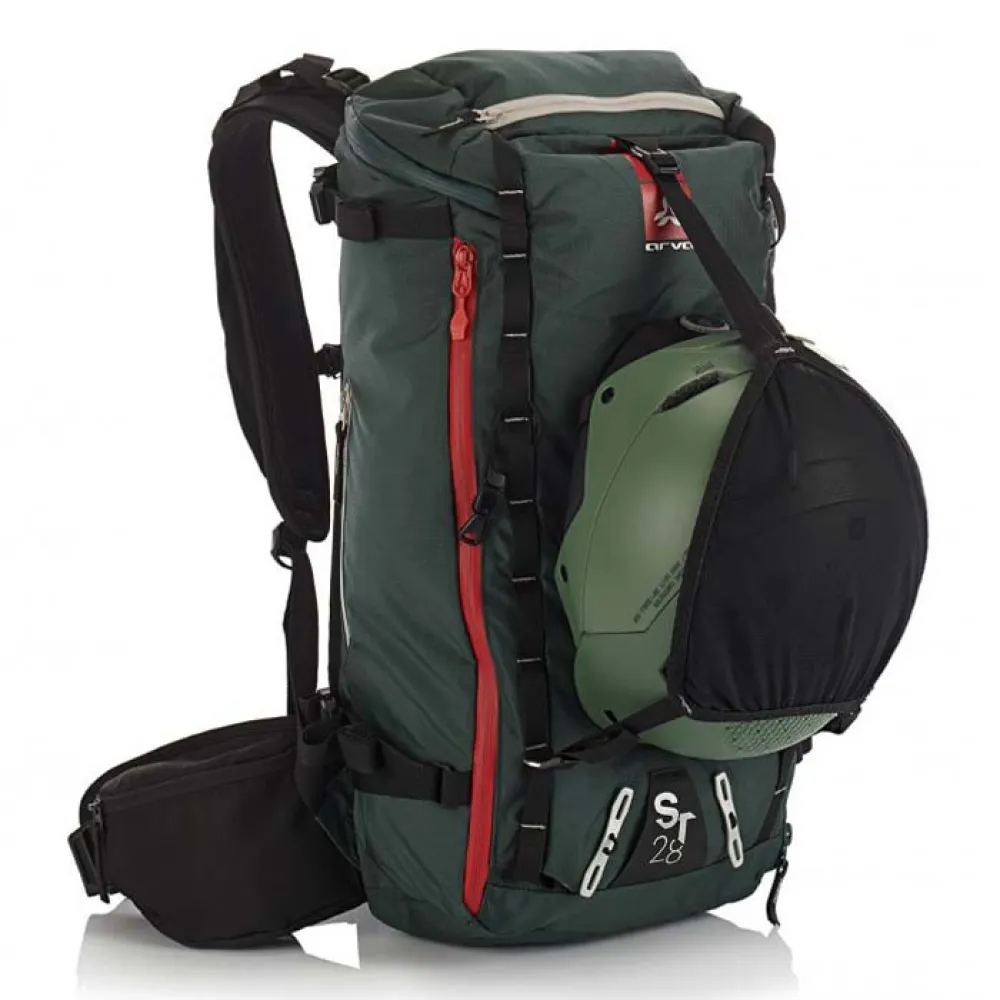 Slipp løs eventyrlysten din med ARVA ST28! Denne allsidige 28L ryggsekken er den ultimate følgesvennen for skiturer, frikjøring og fjellklatring. Dens kompakte, ergonomiske design tilbyr utrolig bevegelsesfrihet samtidig som den bærer alt det viktigste. Bær ski, et snowboard, isøkser og et tau med letthet. Funksjoner inkluderer en dedikert lomme for sikkerhetsutstyr, vanntette YKK-glidelåser, en integrert hjelmholder og et komfortabelt AERO-FRAME ryggsystem. Bygget med resirkulert stoff, er den den perfekte blandingen av ytelse og bærekraft for din neste fjellferd