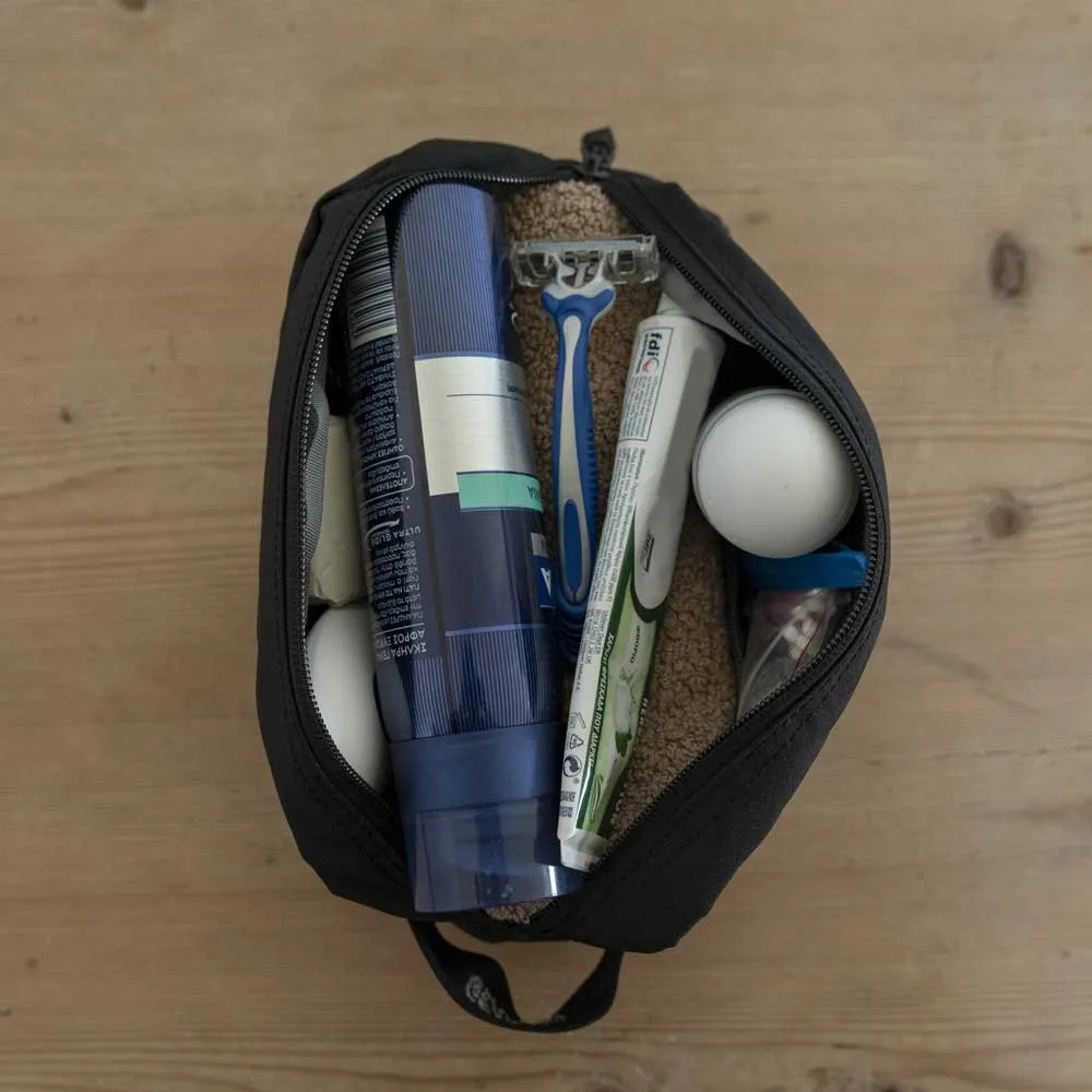 Raw Travel Kit Pouch lett å desinfisere silikongulv for bedre grep på glatte overflater, to indre mesh-rom forseglet med glidelås