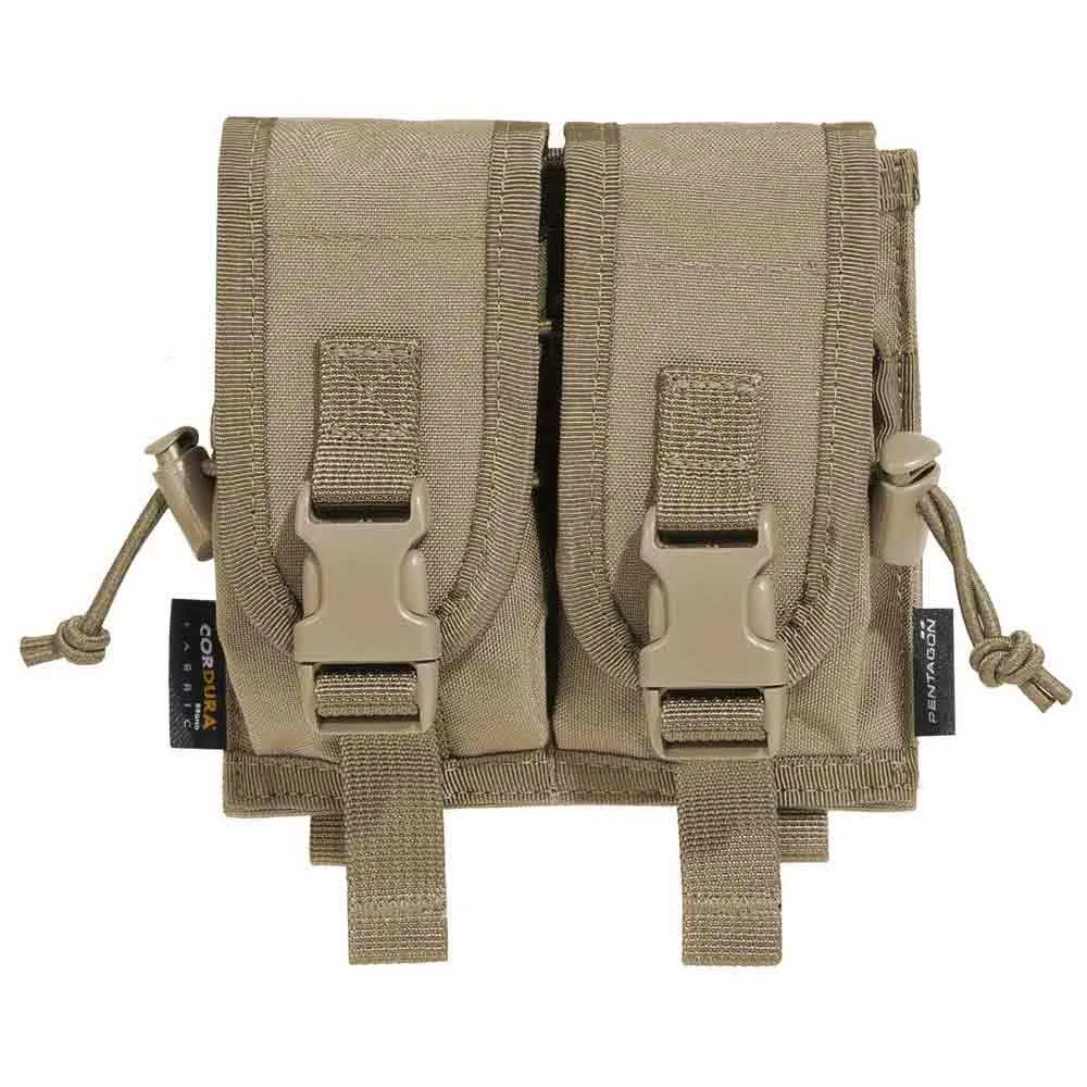 Dobbelt multipose, består av en nyttig pose for forskjellige anledninger. Kan brukes i taktisk, militær eller daglig bruk. Tilhører MILES™ produkter som er ideelle for politi, militæret og sikkerhet. Den er også egnet til å bære tilbehør eller granater/flashposer. Det er krok og løkke lukkeklaffer som holder posene forseglet.