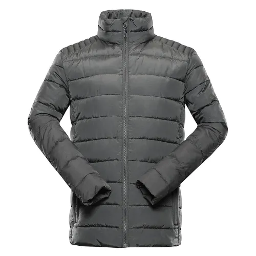 Kurtka zimowa Garat dla mężczyzn czeskiej marki Alpine Pro dzięki zastosowaniu obszernego wypełnienia i dekoracyjnych przeszyć sprawia wrażenie puszystej.