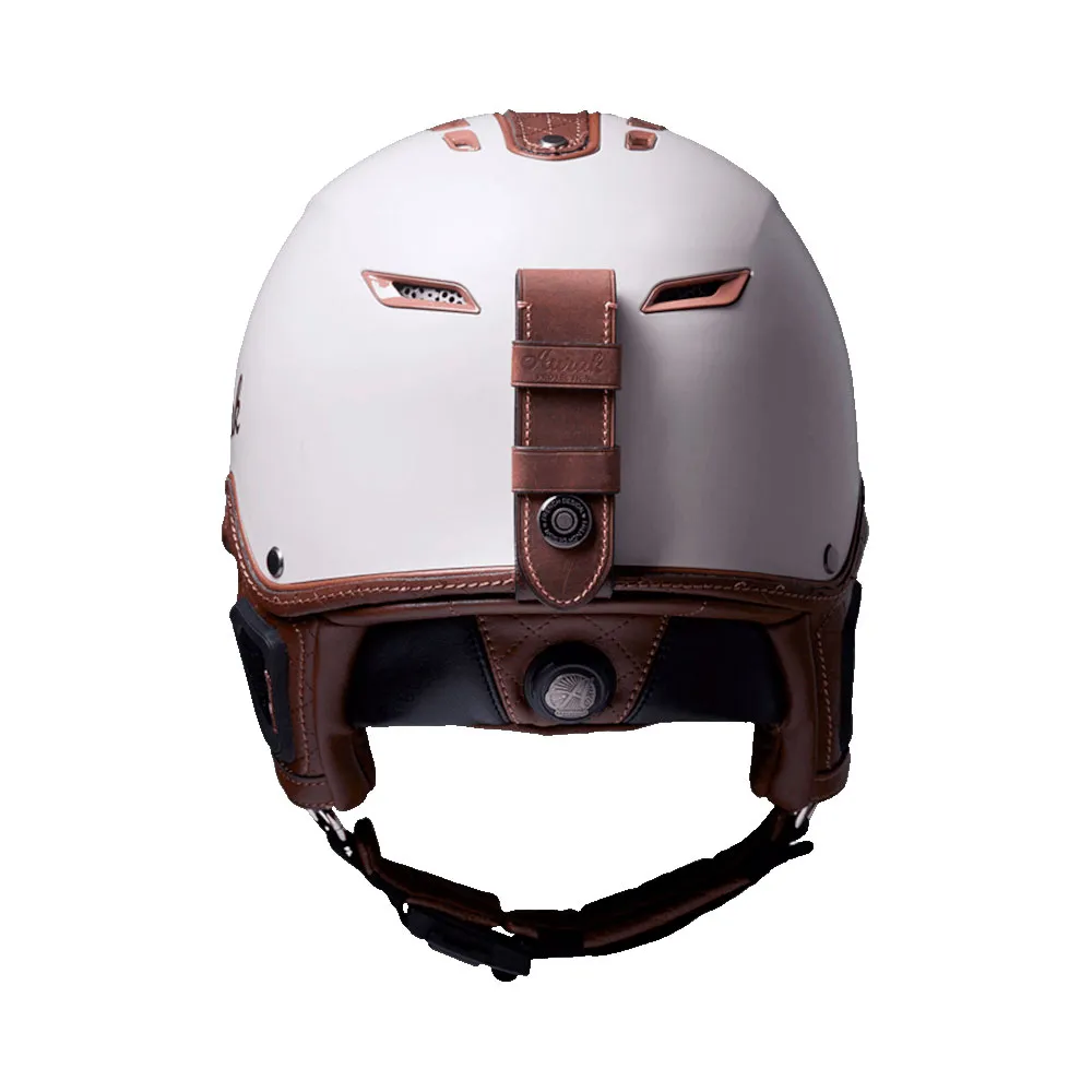 Dzięki ręcznie wykonanym przeszyciom na całej powierzchni, nasz kask Chevel zapewnia ponadczasowy, retro-chic wygląd.